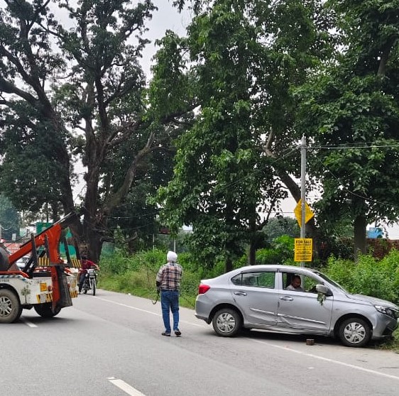 आज दोपहर कोतवाली विकासनगर पर डायल 112 से सूचना मिली कि विकासनगर रोड पर वाहन नंबर UK07DQ 9011 होण्डा अमेज़ कार सडक से नीचे खेतो में उतरकर क्षतिग्रसत हो गयी है। पुलिस ने तत्काल मौके पर पहुंचकर देखा तो उक्त वाहन में कुल 05 लोग सवार थे। घायल व्यक्तियों को नजदीकी चिकित्सालय पहुंचाया गया जिसमें वाहन चालक कमल जैन पुत्र श्याम लाल जैन निवासी सहिया हाल निवासी अंबाडी विकासनगर, उपमा जैन पत्नी कमल जैन उम्र 48 वर्ष, गीता जैन पत्नी स्वर्गीय अशोक जैन उम्र 58 वर्ष, विशाल जैन पुत्र अशोक जैन उम्र 32 वर्ष और कुमारी आरोही जैन पुत्री कमल जैन उम्र 19 वर्ष शामिल हैं। घायल महिलाओं में से एक को धर्मावाला व दूसरी महिला को लेहमन हॉस्पिटल पहुंचाया गया तथा उक्त वाहन को क्रेन के माध्यम से निकालकर वर्कशॉप भिजवाया गया। वाहन का फ्रंट लेफ्ट टायर फटने से हादसा होने की आशंका है। दुर्घटना के कारणों की जांच की जा रही है।