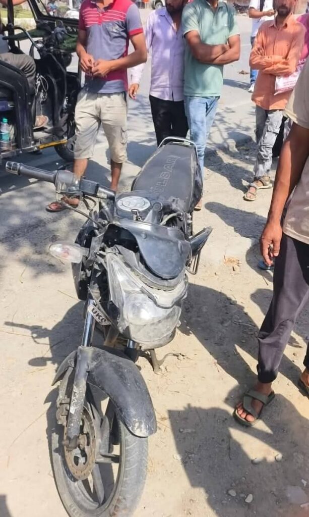 प्राप्त जानकारी के अनुसार दरमियां पुत्र बच्चन सिंह और उनकी पत्नी विनीता निवासी कामदा पोखरी उत्तरकाशी और एक युवक सुरेंद्र सिंह पुत्र गंजी राम निवासी मोरी उत्तरकाशी मोटरसाइकिल से उत्तरकाशी की तरफ जा रहे थे। खुशहालपुर के पास हरबर्टपुर की ओर से देहरादून की ओर जा रही तेज रफ्तार बस ने मोटरसाइकिल को टक्कर मार दी जिससे तीनों लोग गंभीर रूप से घायल हो गए। जानकारी के मुताबिक सुरेंद्र सिंह और विनीता को गंभीर चोट आने पर दून अस्पताल के लिए रेफर कर दिया है। बस चालक बस को दुर्घटना स्थल पर छोड़कर फरार हो गया है। पुलिस द्वारा बस को कब्जे में लेकर चालक की तलाश की जा रही है।