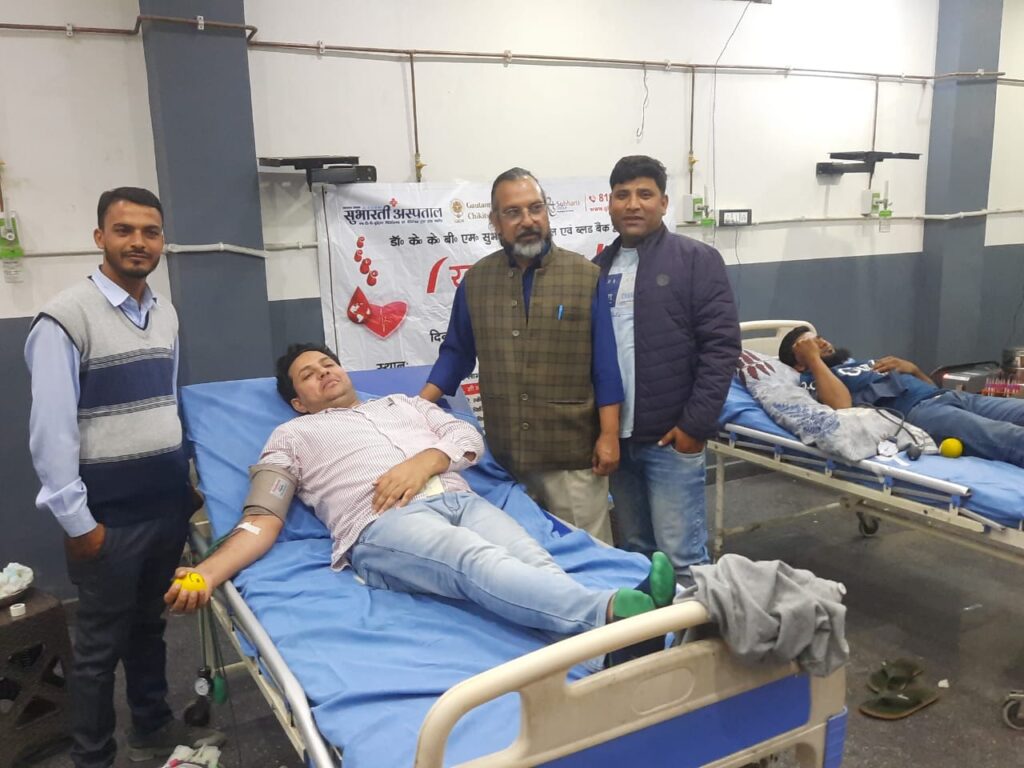अलास्का हॉस्पिटल के संचालक डॉक्टर गुलफाम ने रक्तदान के महत्व पर प्रकाश डाला। डॉक्टर गुलफाम ने कहा कि रक्त को किसी कंपनी में नहीं बनाया जा सकता, मानव का शरीर ही रक्त बनाने की एकमात्र कंपनी है। रक्तदान करने से किसी प्रकार की कोई कमजोरी या बीमारी नहीं होती। मानव शरीर में रक्त बनने की प्रक्रिया सदैव चलती रहती है। स्वस्थ व्यक्ति तीन महीने में रक्तदान कर सकता है। साथ ही उन्होंने यह भी कहा कि एक यूनिट रक्तदान से चार व्यक्तियों की जान बच सकती है। सुभारती हॉस्पिटल की टीम के इंचार्ज हरीश शर्मा ने कहा कि हमारे द्वारा महीने में तीन-चार कैंप लगाए जाते हैं। रक्त का परीक्षण करके ही किसी दूसरे व्यक्ति को दिया जाता है। सुभारती हॉस्पिटल की टीम में हरीश शर्मा के अलावा राजेश निर्मल आदि टीम के सदस्य मौजूद रहे।