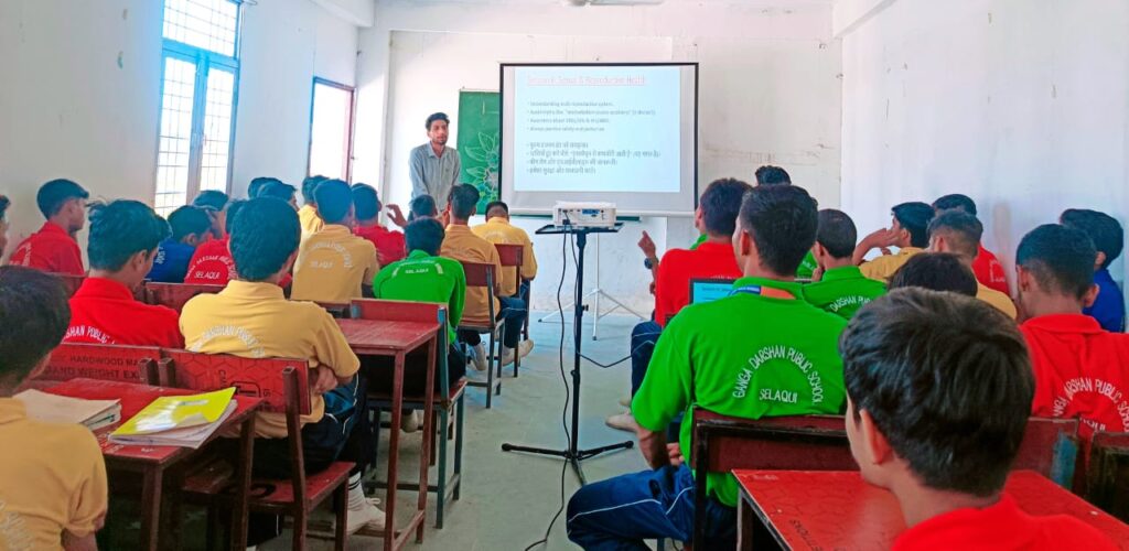 आज शंकरपुर स्थित गंगा दर्शन पब्लिक स्कूल में किशोरावस्था व यौन शिक्षा पर आधारित सेमिनार का आयोजन किया गया। सेमिनार का शुभारंभ स्कूल के डायरेक्टर अनुराग रावत व प्रिंसिपल संगीता रावत द्वारा किया गया। सेमिनार में मुख्य वक्ता के रूप में साइकोलॉजी के असिस्टेंट प्रोफेसर रियासत खान रियाज द्वारा किशोरावस्था व यौन शिक्षा पर जानकारी प्रदान की गई, जिसमें रियाज द्वारा किशोरावस्था में किशोरों में होने वाले शारीरिक, मानसिक एवं व्यवहारिक परिवर्तनों के विषय में जानकारी प्रदान की गई।