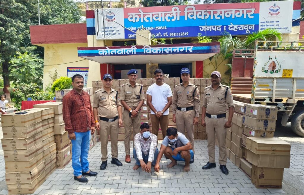 विकासनगर पुलिस ने आज एस0टी0एफ0 के साथ मिलकर 202 पेटी अवैध अंग्रेजी शराब जिसमे 117 पेटी रॉयल स्टैग, 35 पेटी इम्पेरियल ब्लू , 35 पेटी डिस्काउंट व 15 पेटी रॉयल जनरल ले जाते हुए दो अभियुक्तों को गिरफ्तार करने में सफलता हासिल की है। उक्त शराब को आगामी पंचायत चुनाव को प्रभावित करने के उद्देश्य के रूप में देखा जा रहा है।