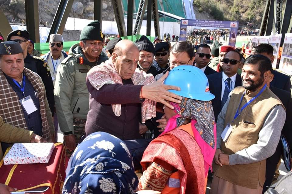 मुख्यमंत्री धामी ने रक्षा मंत्री का स्वागत एवं अभिनंदन करते हुए सीमांत क्षेत्रों की विकास परियोजनाओं के लोकार्पण पर आभार व्यक्त किया। मुख्यमंत्री ने कहा कि प्रधानमंत्री नरेंद्र मोदी के मार्गदर्शन में उत्तराखण्ड को आगे बढाने का काम तेज़ी से किया जा रहा है।मुख्यमंत्री ने कहा कि प्रधानमंत्री नरेन्द्र मोदी के नेतृत्व में राज्य के सामरिक, धार्मिक व पर्यावरणीय महत्व को समझते हुए बड़ी परियोजनाओं पर काम शुरू किया गया है। रक्षा मंत्री ने अपने संबोधन में कहा कि भारत की सीमाओं की रक्षा के लिए हम सभी को मिलकर काम करना होगा। इसमें हमें सबका सहयोग मिल रहा है। रक्षा मंत्री ने BRO की सराहना करते हुए कहा कि किसी परियोजना को समय पर पूरा करना BRO की प्रतिबद्वता के कारण ही संभव हुआ है। उन्होंने कहा कि हमारी सरकार सीमावर्ती क्षेत्रों को मुख्यधारा का हिस्सा मानती है।