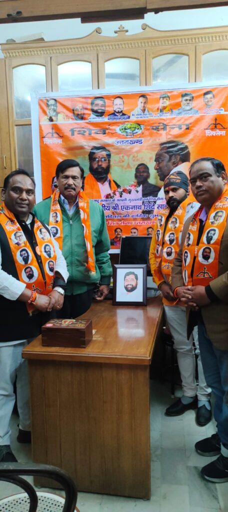 देहरादून : आज दिनांक 9 फरवरी 2024 को देहरादून उत्तराखंड शिवसेना कैंप कार्यालय राज प्लाजा , राजपुर रोड एवं देहरादून नगर कार्यालय किशन नगर, में महाराष्ट्र सरकार के मुख्यमंत्री एवम् शिवसेना पंत प्रमुख एकनाथ संभाजी शिंदे साहेब के जन्मदिवस के अवसर पर राज्य कार्यकारणी सदस्य के सभी पदाधिकारियों ने राज्य समन्वयक उत्तराखंड भूपेंद्र भट्ट के सानिध्य में एवं प्रदेश मुख्य महासचिव अखिल शर्मा स्वामी की अध्यक्षता में कार्यक्रम रखा गया। जिसमें मुख्यमंत्री एकनाथ शिंदे साहेब को हार्दिक शुभकामनाओं के साथ जन्मदिन की बधाई दी गई।