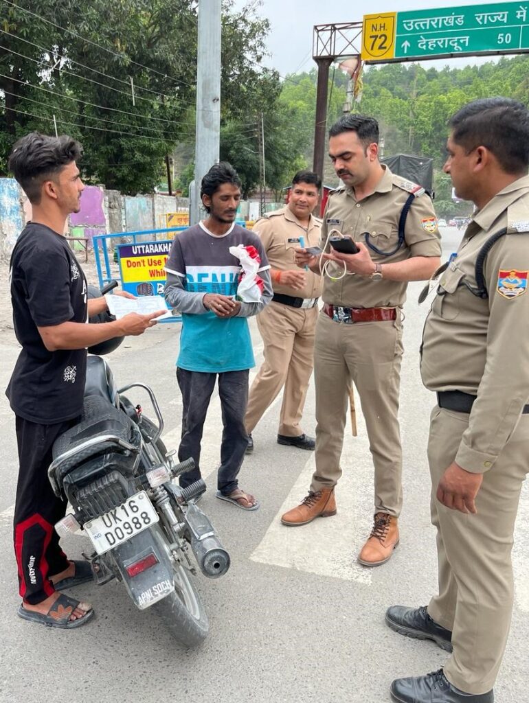 एसएसपी देहरादून अजय सिंह के आदेशानुसार एसपी ग्रामीण लोकजीत सिंह व क्षेत्राधिकारी विकासनगर भास्कर लाल शाह की निगरानी में में कोतवाली विकासनगर पुलिस द्वारा विशेषकर चलते वाहन पर मोबाइल का प्रयोग करना, ट्रिपल राइडिंग करना , नाबालिग बच्चो द्वारा वाहन चलाने वालों के विरुद्ध विशेष चेकिंग अभियान चलाया गया।